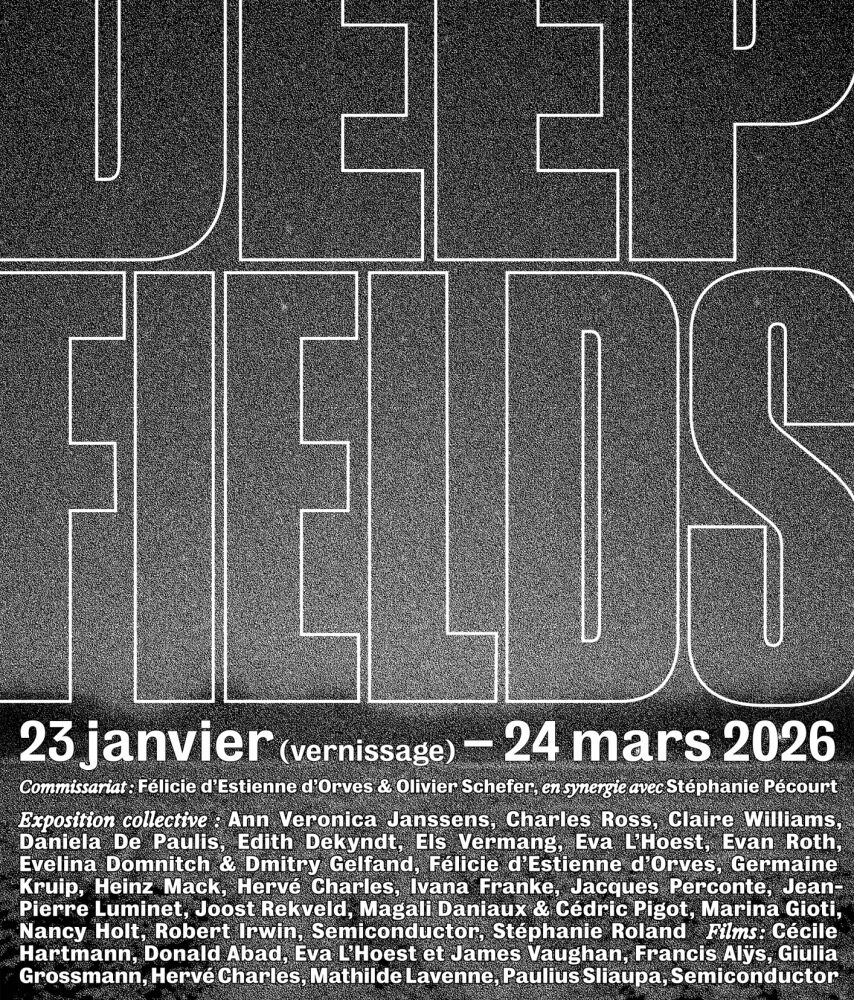 Deep Fields brings together artists who explore deep fields, from distant desert landscapes to unstable, mobile fields of particles. Confronted with the unrepresentable and the invisible, the artists question perception, which is constantly referred back to its own limits, frameworks and boundaries. Their works are traces of events: the material...