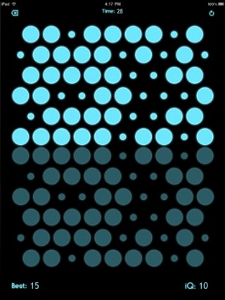 This app is deceptively hard, you need to replicate the randomly created dot pattern displayed in the mirrored pattern below it. use your fingers to change the sizes of the spheres to match the ones above, but, its not that easy, you have a time limit as well.