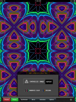 Much more than just a traditional kaleidoscope, this app is a creative tool for producing beautiful moving mirrored images… its literally an interactive work of art. comes standard with all the features you would expect in a digital kaleidoscope, but adds an impressive collection of features incl. a STEREOSCOPIC 3-D mirror and the amazing IMAGE SYNTHESIZER which creates image variations on the fly.