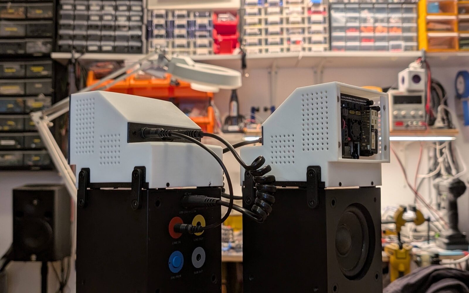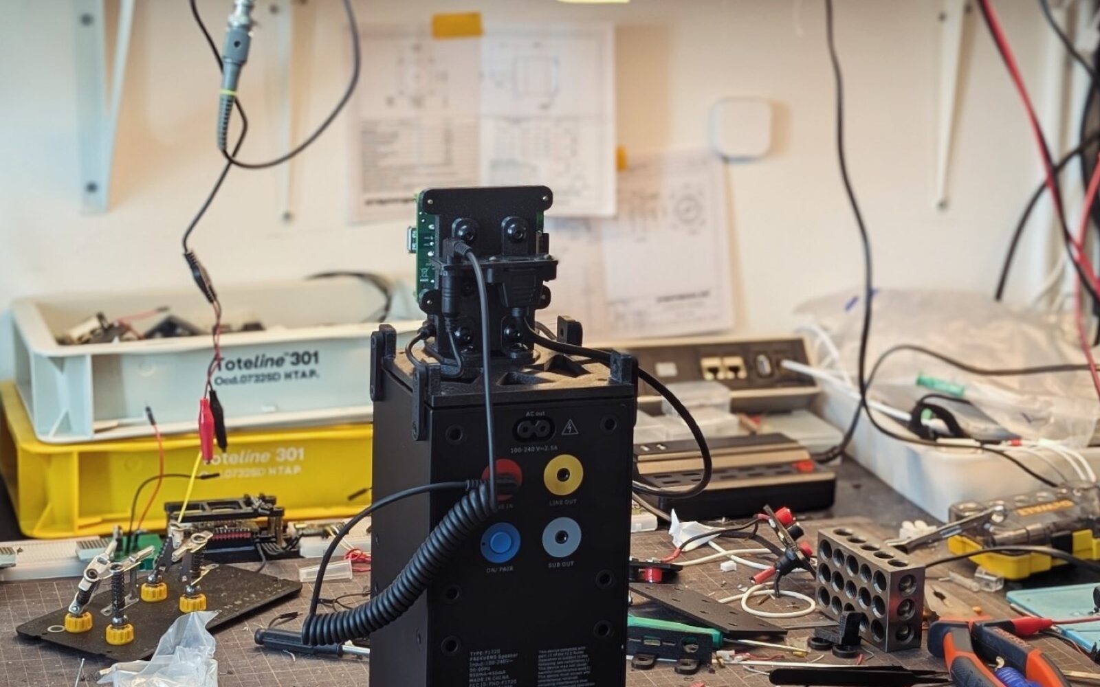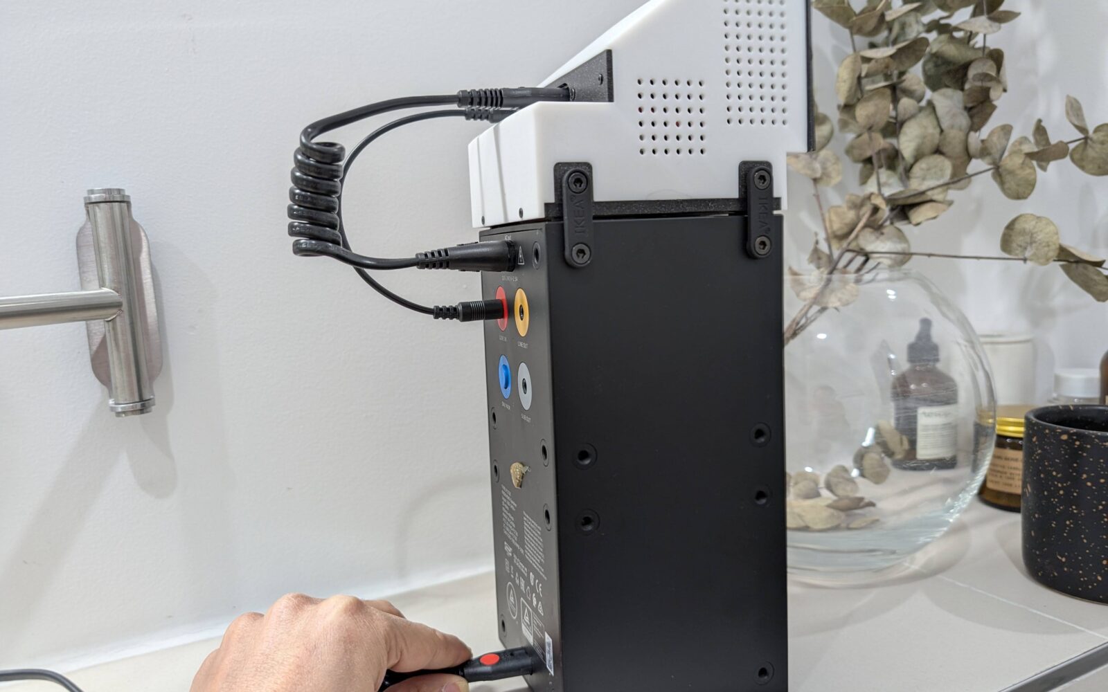 It can’t play audio on its own, so it requires an additional accessory (shown in the image: Ikea FREKVENS speakers designed in collaboration with Teenage Engineering). Following this theme, it’s designed to look like a real industrial product. The form—somewhat brutal—draws inspiration primarily from the speakers themselves. It includes product-like details: easy user-configurable WiFi and simple press-based power controls. These elements are designed with the same care you’d expect in a real IoT product’s software.