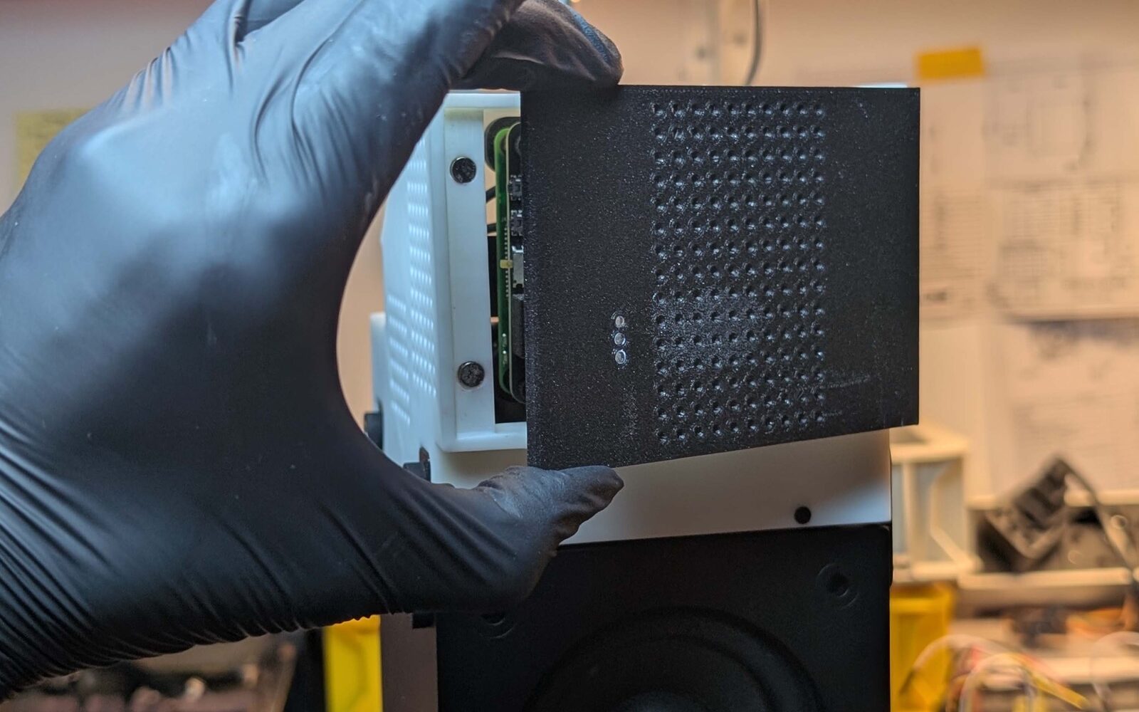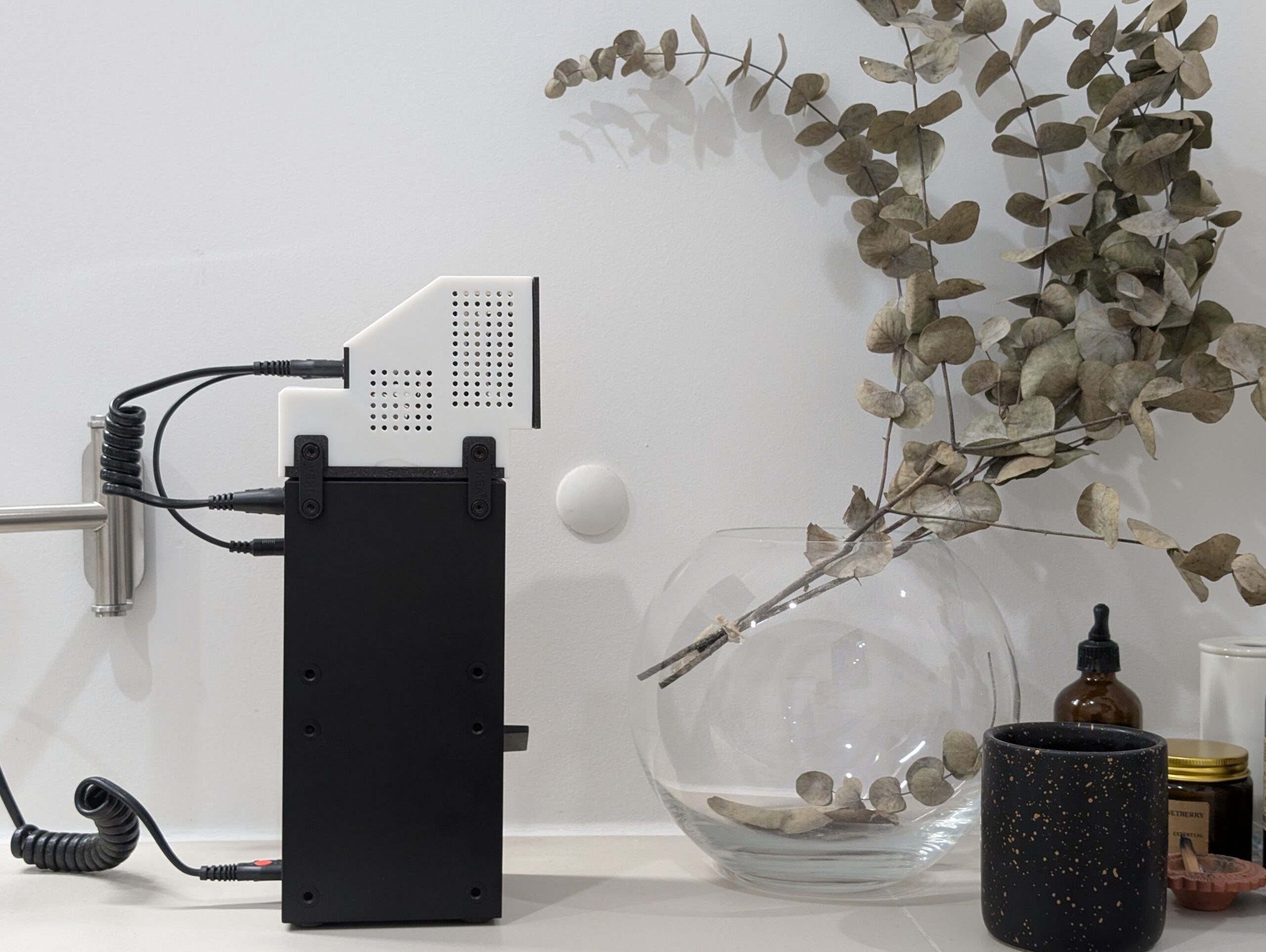 When someone enters the space (imaginary target location: bathrooms), an embedded mmWave radar triggers playback. It’s designed as an everyday object, like the ambient music players in fancy hotel bathrooms. But in our case, it is powered by AI, but that blends into its environment. A visitor hears only a looping song, unaware of the intentions and mechanisms embedded inside, much like modern devices performing complex operations we don’t necessarily understand or comprehend.