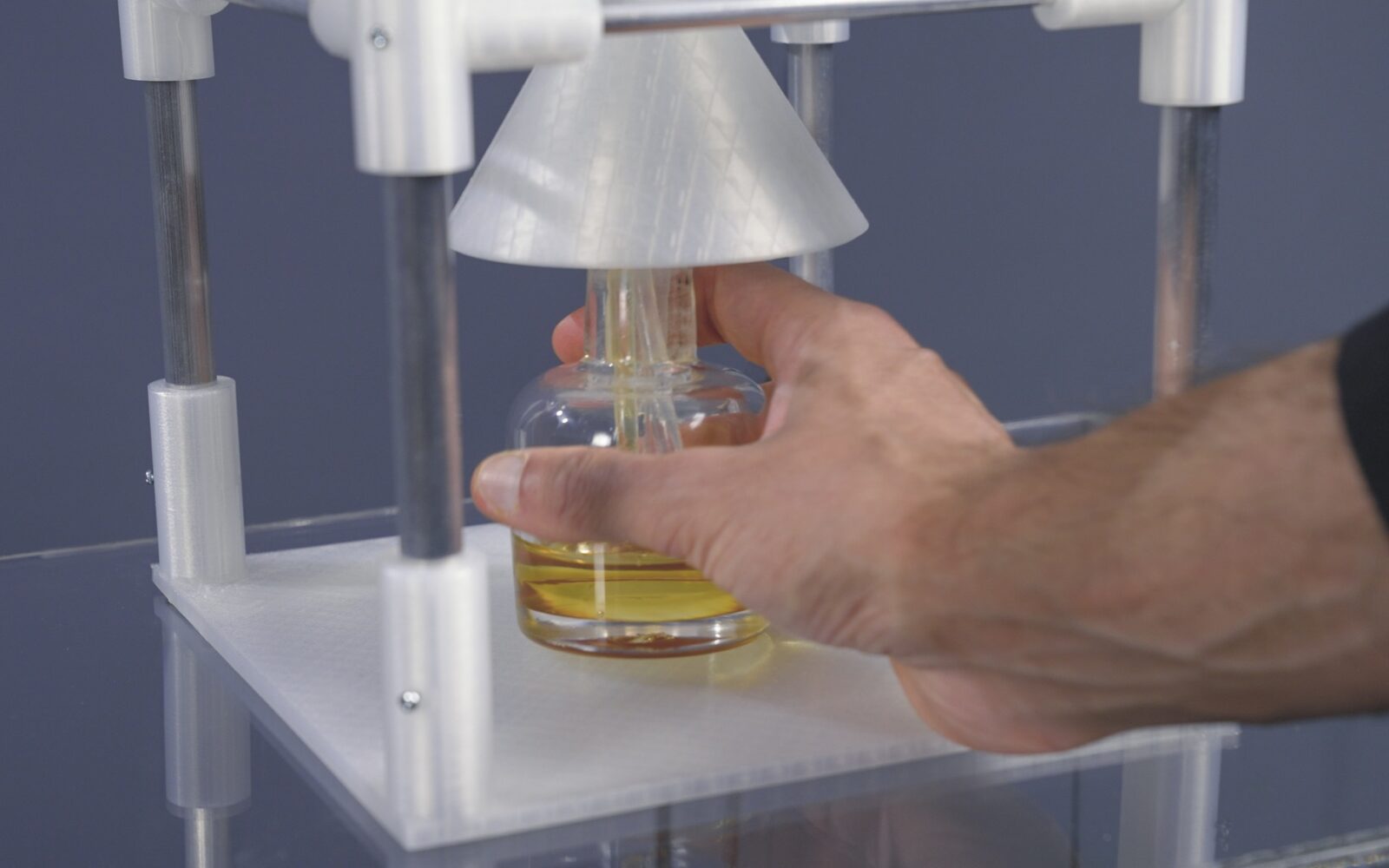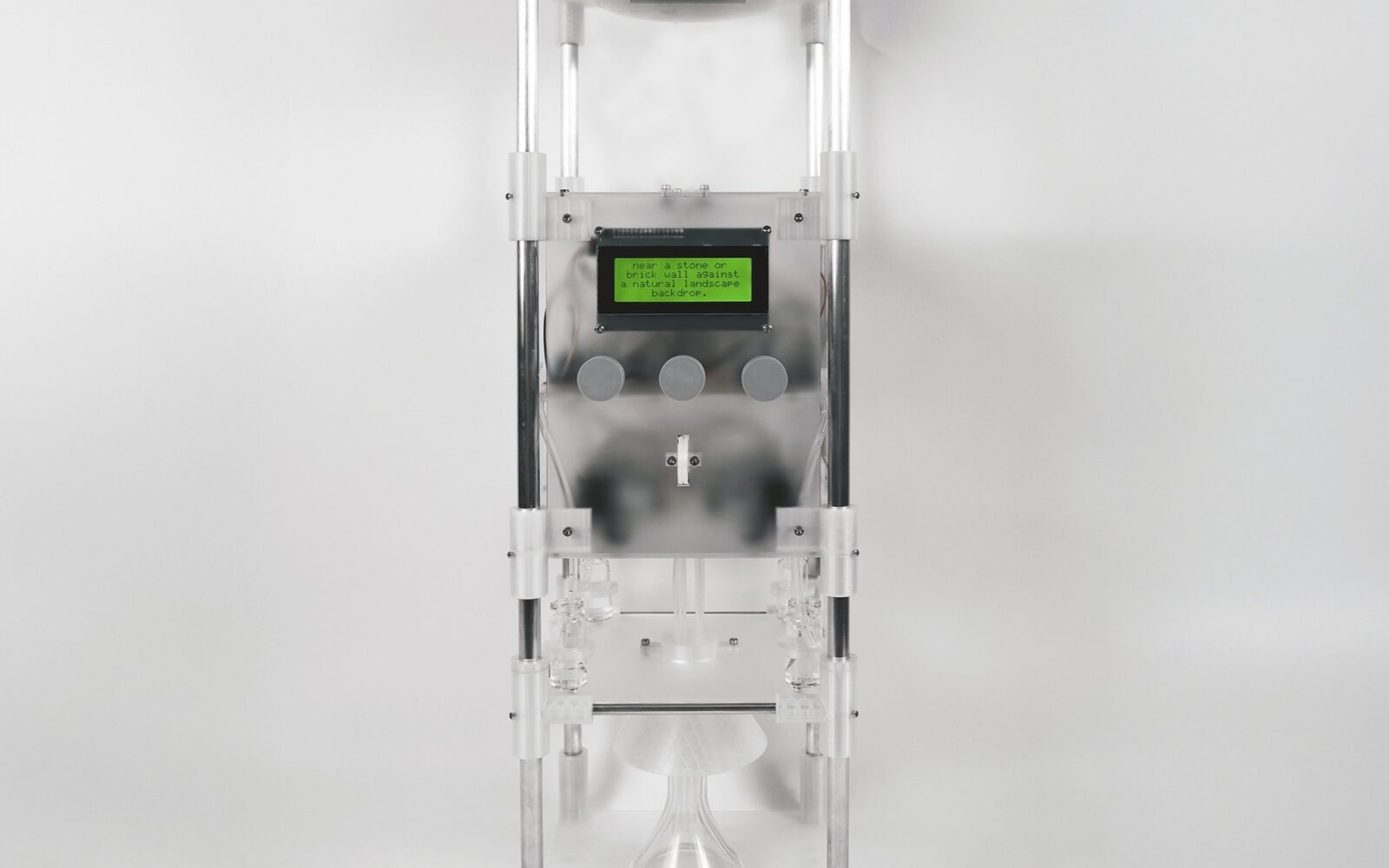 The scent is then materialised through a custom olfactory display, with pump timings computed from the formula, activating peristaltic pumps that draw from glass vials and dispense their contents into a shared blending vessel. This process echoes the metaphor of distillation, with memory condensed into olfactory form through a systematic, multi-stage process.