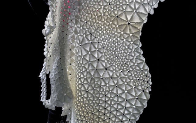 The Museum of Fine Arts, Boston (MFA) commissioned Nervous System to create a new dress for the exhibition #techstyle which runs from March 6 through July 10, 2016. The exhibition explores the synergy between fashion and technology and how it is not only changing the way designers design, but also the way people interact with their clothing.