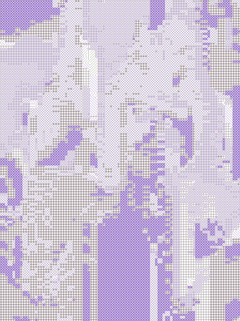 Generative animated artwork made using shader feedback and pixel quantization. PRINTERS is a study of rasterized type and bitmap imagery. It builds on the tradition of ASCII and typographic art, blending dithering techniques with chunky, pixelated glyphs. Here, the movement and blending of color is interpreted as a monochrome composition of recognizable pixel patterns taken from legacy video games and operating systems. What appears as typography is actually a custom set of 8x8 pixel patterns rendered in a GLSL shader that produces a conceptual tension between low-res graphics and high-power GPU computation. PRINTERS is designed to be both viewed on a screen and printed on office paper with a home/office inkjet printer. Press 'i' to invert the colors. Press '1', '2', or '3' to scale the bitmap glyphs. Press 'g' to download a looping animated GIF (90 frames). Press 's' to capture a single frame. Press 'f' (or double tap in mobile) to stretch to full screen. Made with vanilla javascript and GLSL. By @galoandstuff.