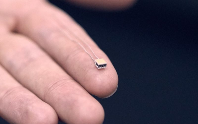 To make this work the team developed a custom circuit board using the tiny Simblee BLE Arduino chip, and custom iOS app that streams audio to a Tensorflow application running a neural net trained on synthetic voices.