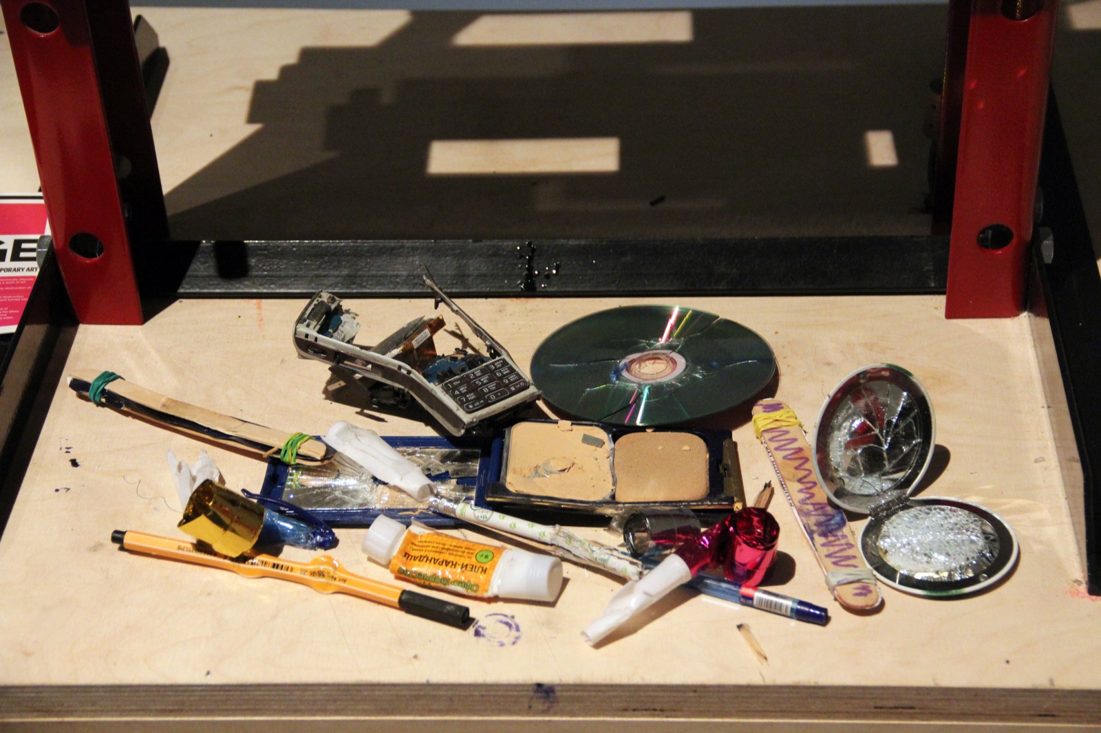 The project is intended to provoke visitors into spontaneously ridding themselves of material consumer objects for the sake of creating their own individual work of art via deprivation, divestment and destruction…. The technological aesthetic involved constitutes an ironic attempt to make the process of art production into a technological process, but the result, unlike that of mass production, demonstrates a contrary phenomenon – this is a work involving programming and code in the context of generative art, with the potential to broaden the range of instruments at art’s disposal. At the end of the process, the sound production is automatically recorded onto an audio CD and handed over to the participant, completing the process of exchange.
