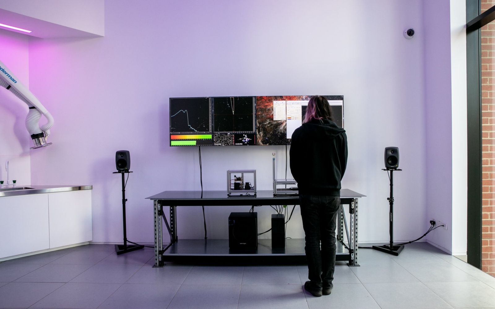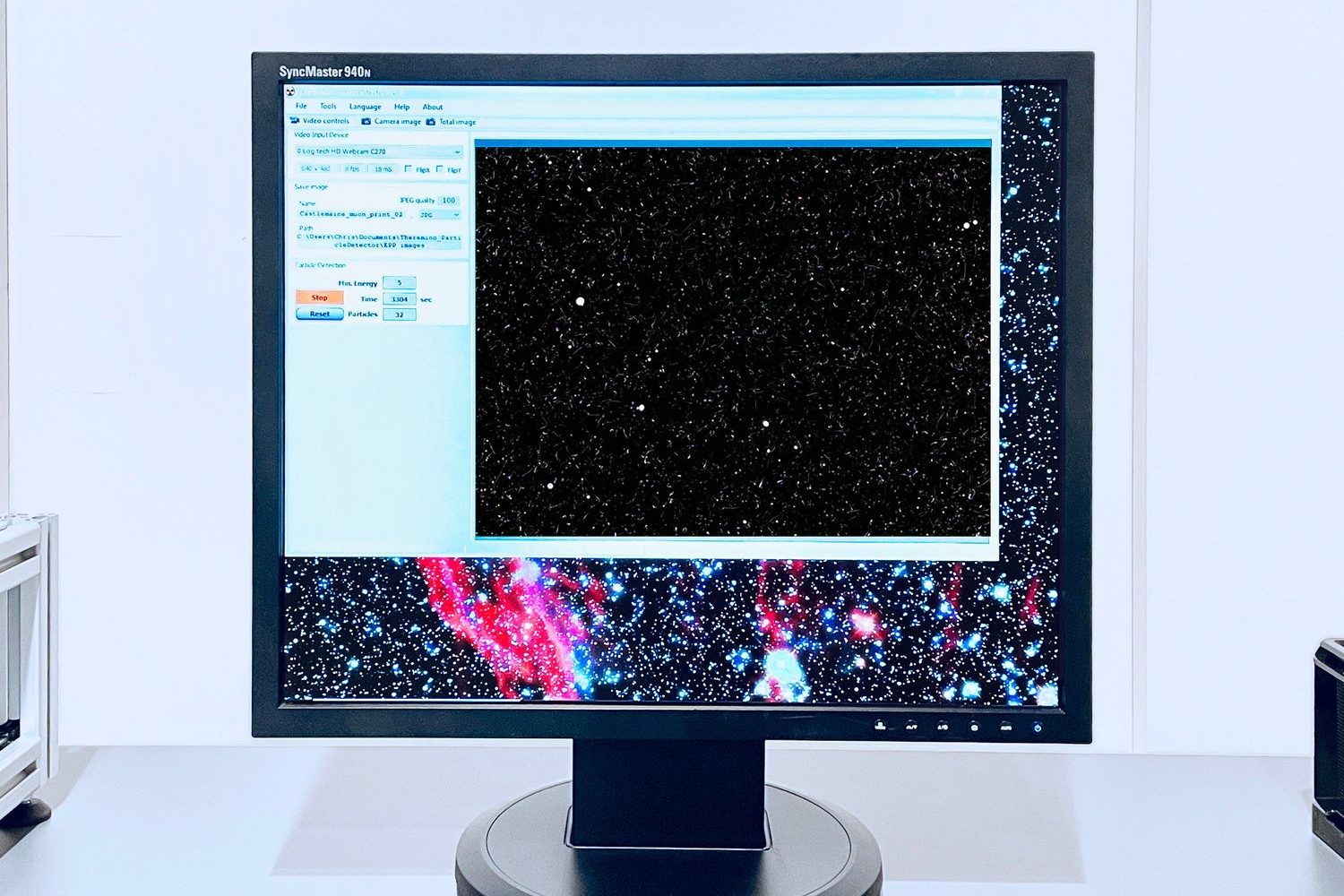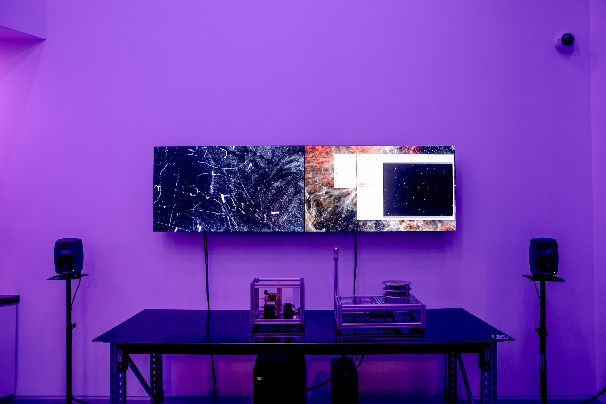 The µ Muography device is designed to be modular in nature, allowing Jon to add to, and adapt for a range of creative projects. The first iteration was an experimental image making process developed for Castlemaine Art Museum (CAM) where the device became a “cosmic camera”, detecting muons and recording each strike on a modified sensor, accumulating over the lifespan of the exhibition, creating the resulting images. The iteration for DARK MATTER exhibition develops the device’s potential as an experimental performance tool.