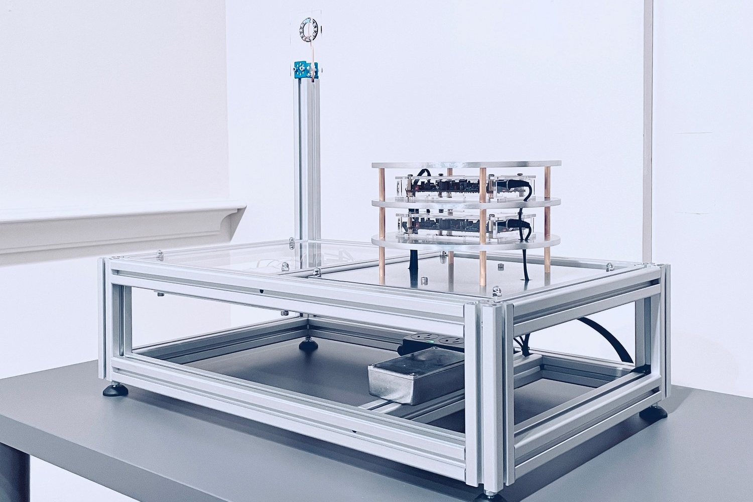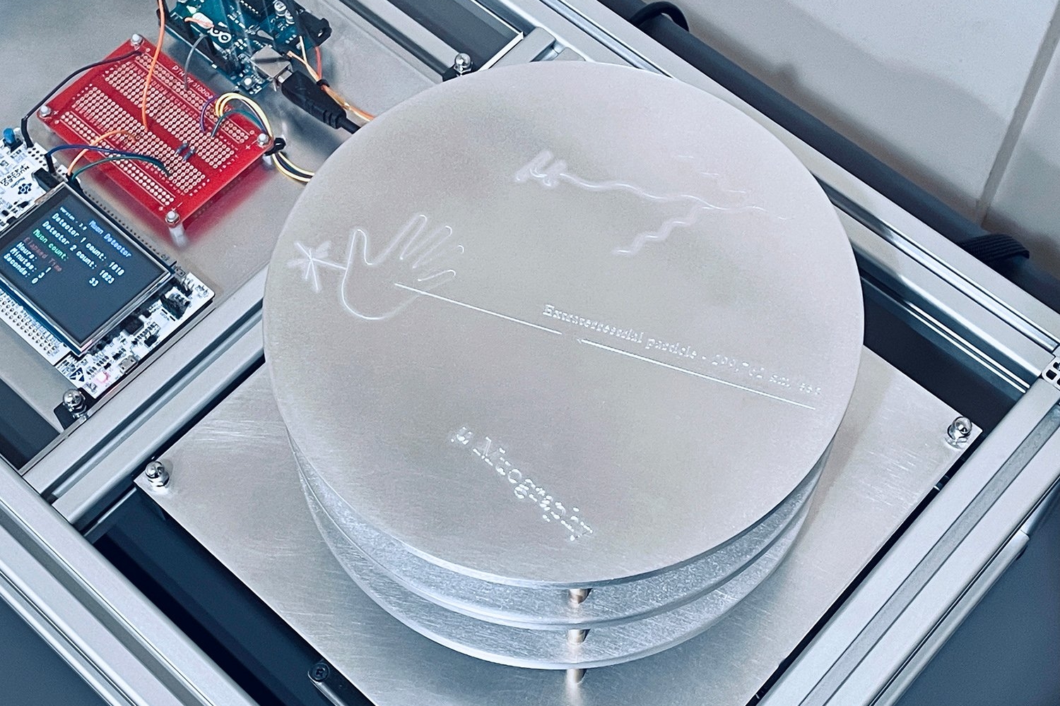 Created by Jon Butt the µ Muography device is an experimental DIY particle detector, built in his studio during Melbourne’s lockdown over 2020/2021. Engineered using freely available open-source tools, modified electronics and hand-built circuitry, the device detects high speed cosmic particles (muons) as they rain down to earth.